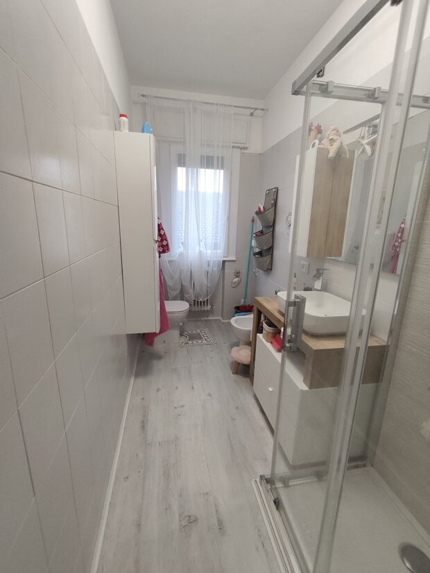 La recente ristrutturazione ha interessato finiture e impianti: pavimenti nuovi, tapparelle motorizzate, impianto di aria condizionata installato nel disimpegno e infissi in ottime condizioni.