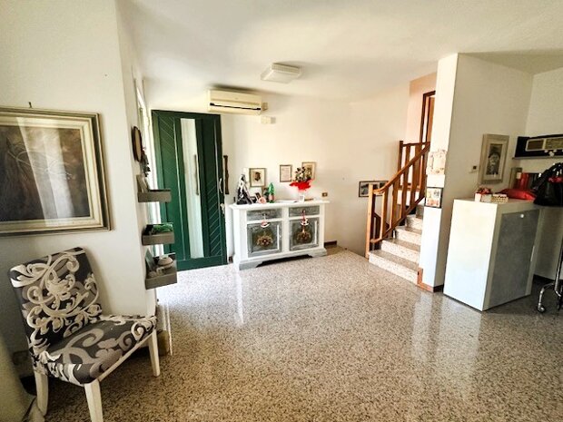 In strada privata, nel cuore tranquillo di Martellago, una casa che unisce indipendenza e comodità. Proponiamo in vendita una villetta a schiera centrale con ingresso indipendente, inserita in un contesto riservato e silenzioso, a pochi passi dai principali servizi del centro. L’ingresso è anticipato da un gradevole portico frontale, ideale per accogliere ospiti o godersi momenti di relax all’aperto. Al piano terra si sviluppa la zona giorno, composta da un luminoso soggiorno con angolo cottura, bagno e pratico ripostiglio, perfetto anche come dispensa. Sul retro, lo scoperto pavimentato privato rappresenta uno spazio funzionale e riservato da vivere nelle belle stagioni. La zona notte, al piano superiore, offre due camere da letto, un secondo bagno finestrato con vasca, un ampio disimpegno, una terrazza abitabile ideale per pranzi all’aperto e un comodo poggiolo. La proprietà è completata da un garage al piano terra oltre a spazi accessori utili per la vita quotidiana. Negli anni l’abitazione è stata oggetto di importanti interventi: tetto rifatto, nuova caldaia a condensazione, infissi in PVC con doppio vetro e porte interne sostituite. Alcuni ambienti offrono ancora margine di personalizzazione, rendendo la casa perfetta per chi desidera adattarla al proprio gusto. Una soluzione ideale per chi cerca tranquillità, indipendenza e la praticità di vivere a pochi minuti da tutti i servizi di Martellago.