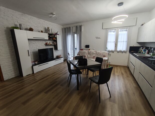 Ampio Vivibilità: Un generoso open space giorno-notte con cucina a vista crea un ambiente perfetto per la vita quotidiana e per ospitare amici e famiglia in totale comodità.