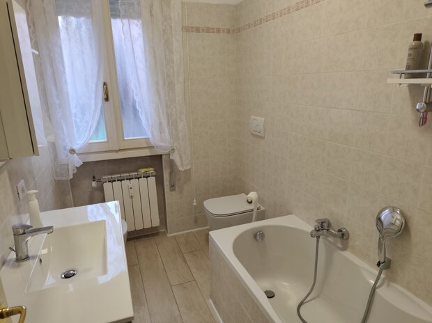 La zona notte, ben separata, offre privacy e tranquillità: tre camere da letto – una matrimoniale e due singole, di cui una con terrazzo – e un secondo bagno finestrato con vasca, comodo e funzionale per la vita quotidiana.